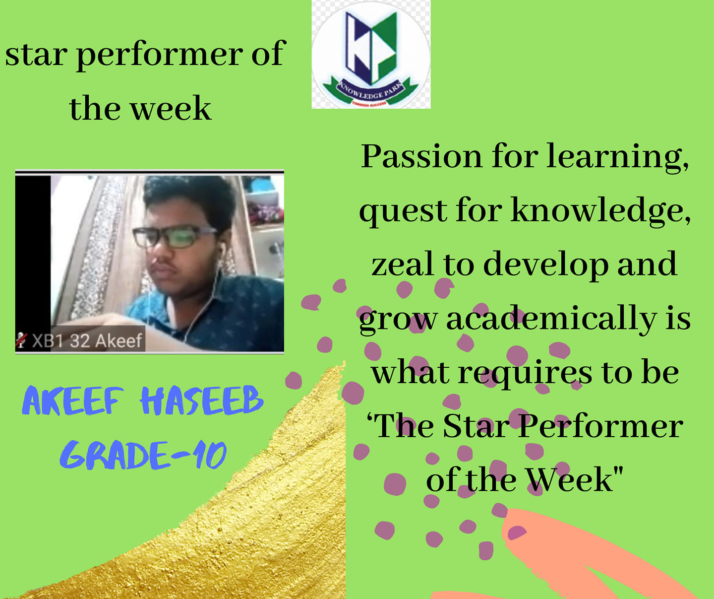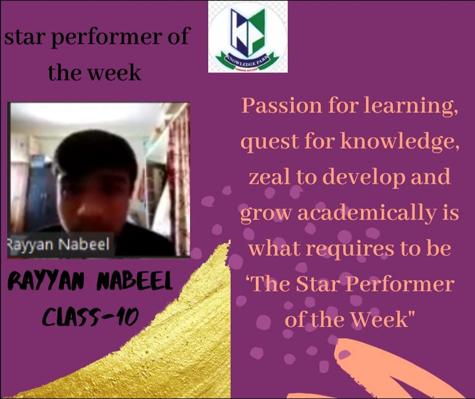 "Stars do not pull each other down to be more visible; they shine brighter" Forging ahead with a new and vibrant week ahead, here's a look of "The Star Performer" of the last week, who is dedicated towards the learning and being an inspiration to all his academic peers.