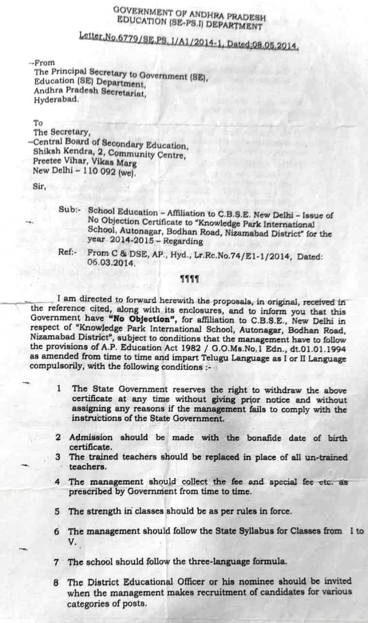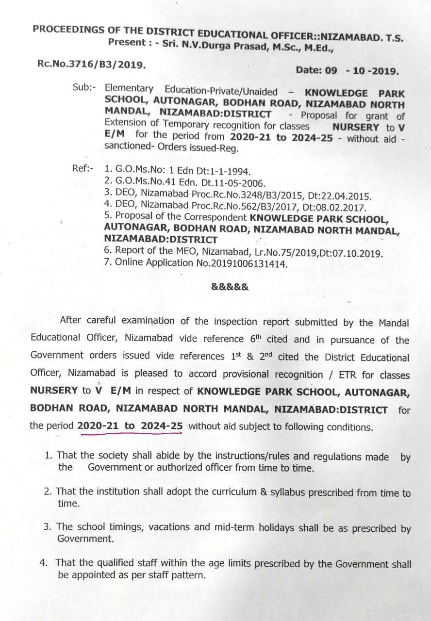 1 | NAME OF THE SCHOOL | KNOWLEDGE PARK INTERNATIONAL SCHOOL |