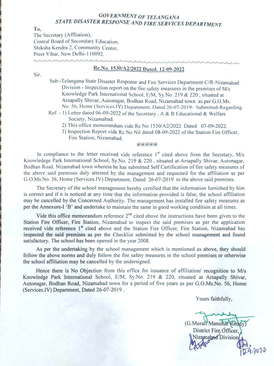 6 | COPY OF THE DEO CERTIFICATE SUBMITTED BY THE SCHOOL FOR AFFILIATION / UPGRADATION/EXTENSION OF AFFILIATION OR SELF CERTIFICATION BY SCHOOL | Document |
