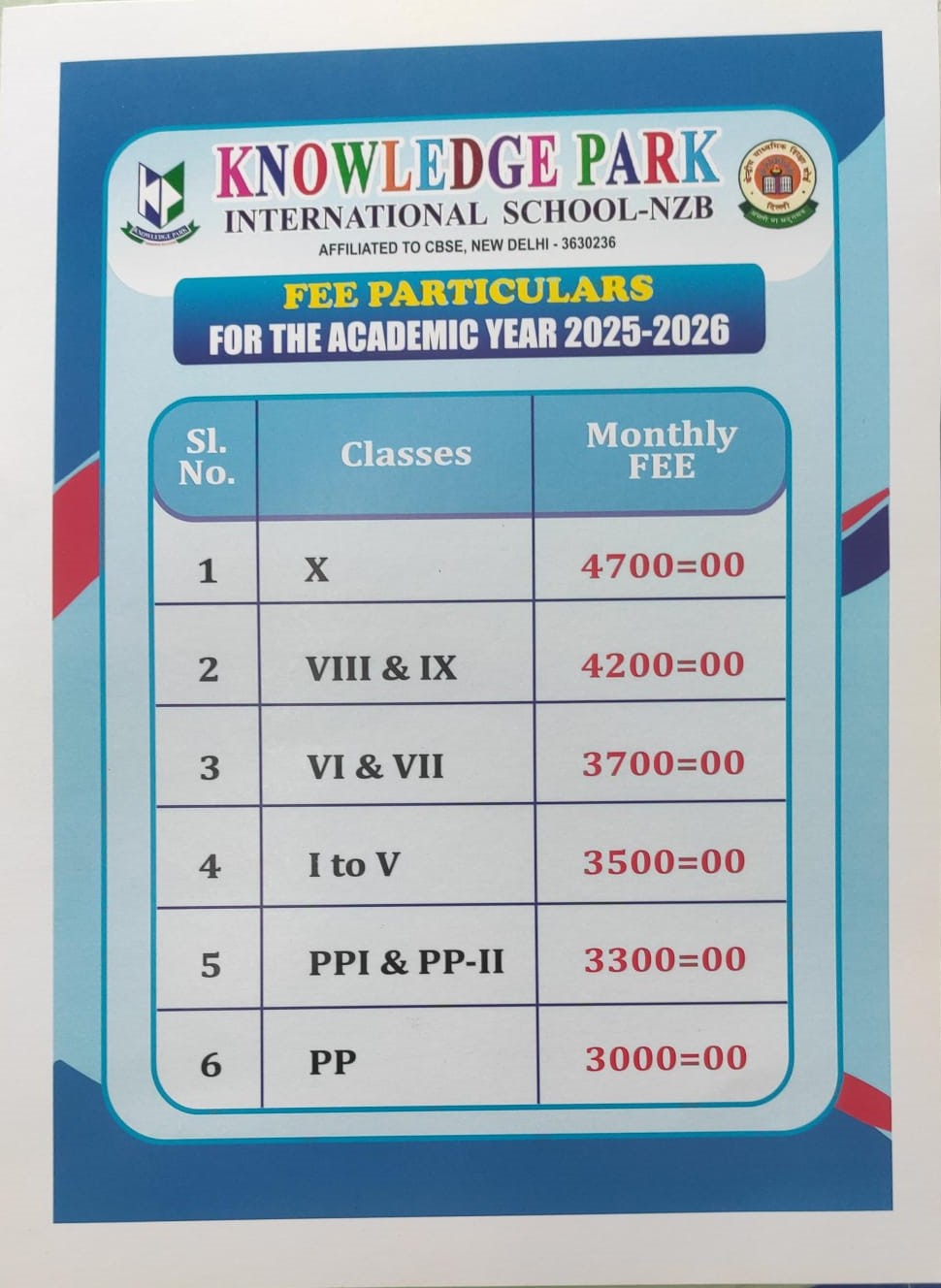 1 | NAME OF THE SCHOOL | KNOWLEDGE PARK INTERNATIONAL SCHOOL |