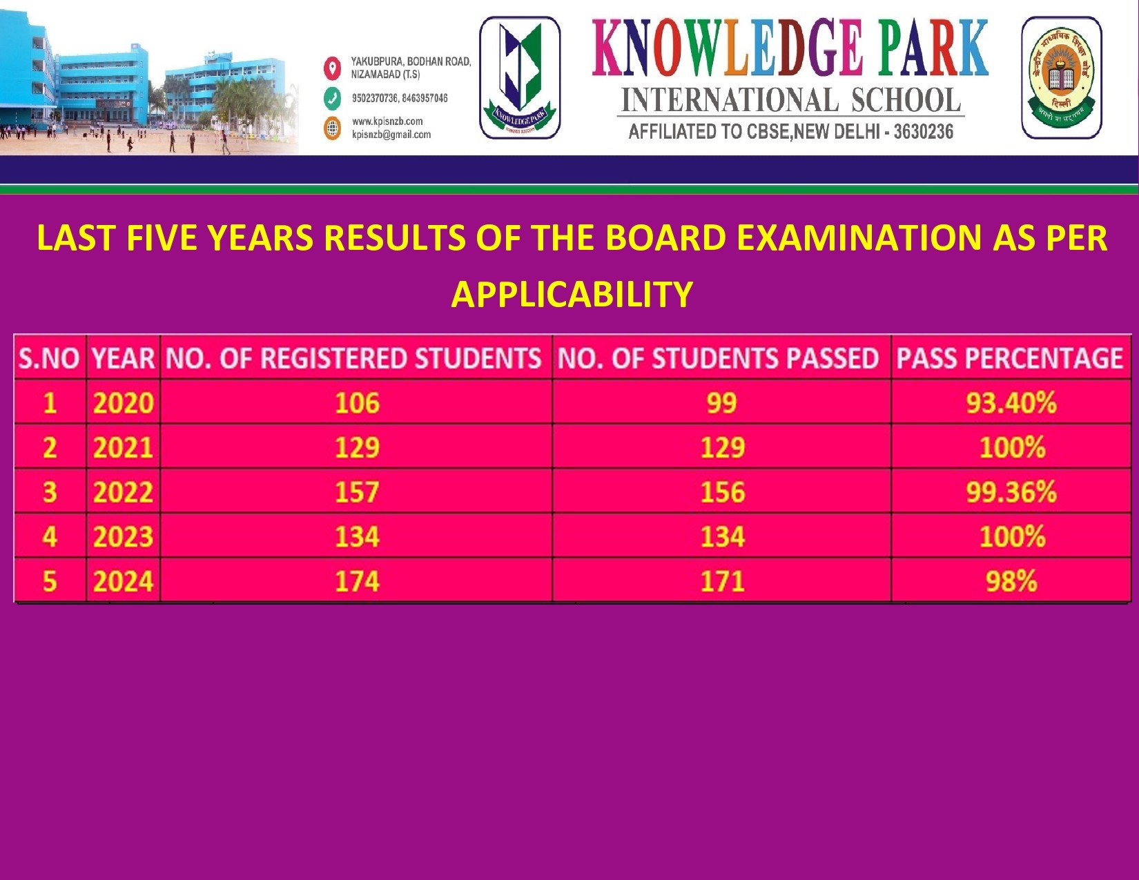 SL NO. | YEAR | NO. OF REGISTERED STUDENTS | NO. OF STUDENTS PASSED | PASS PERCENTAGE | REMARKS |